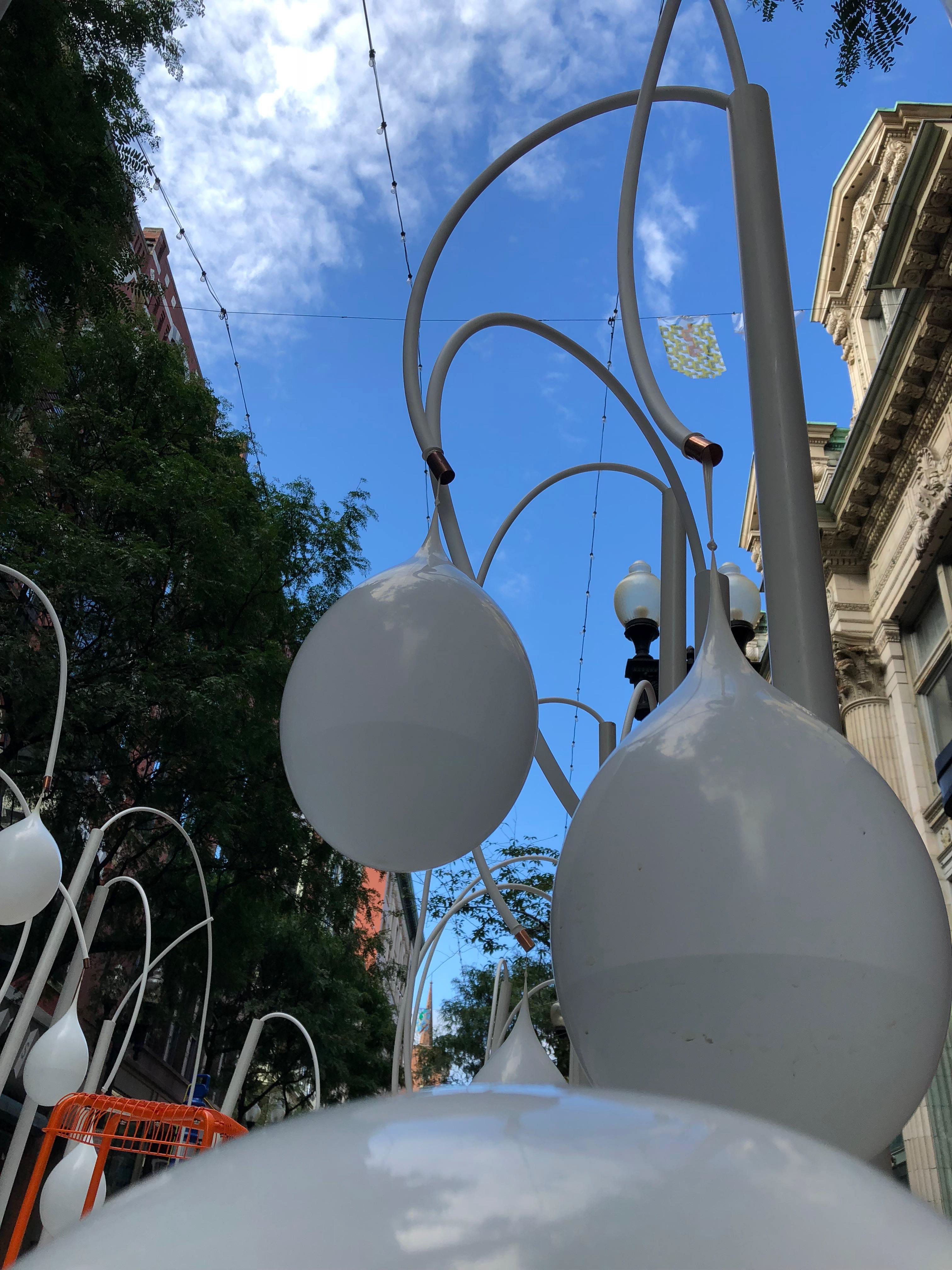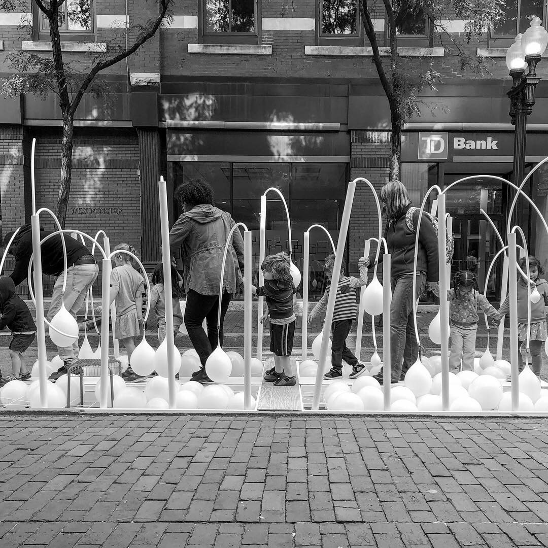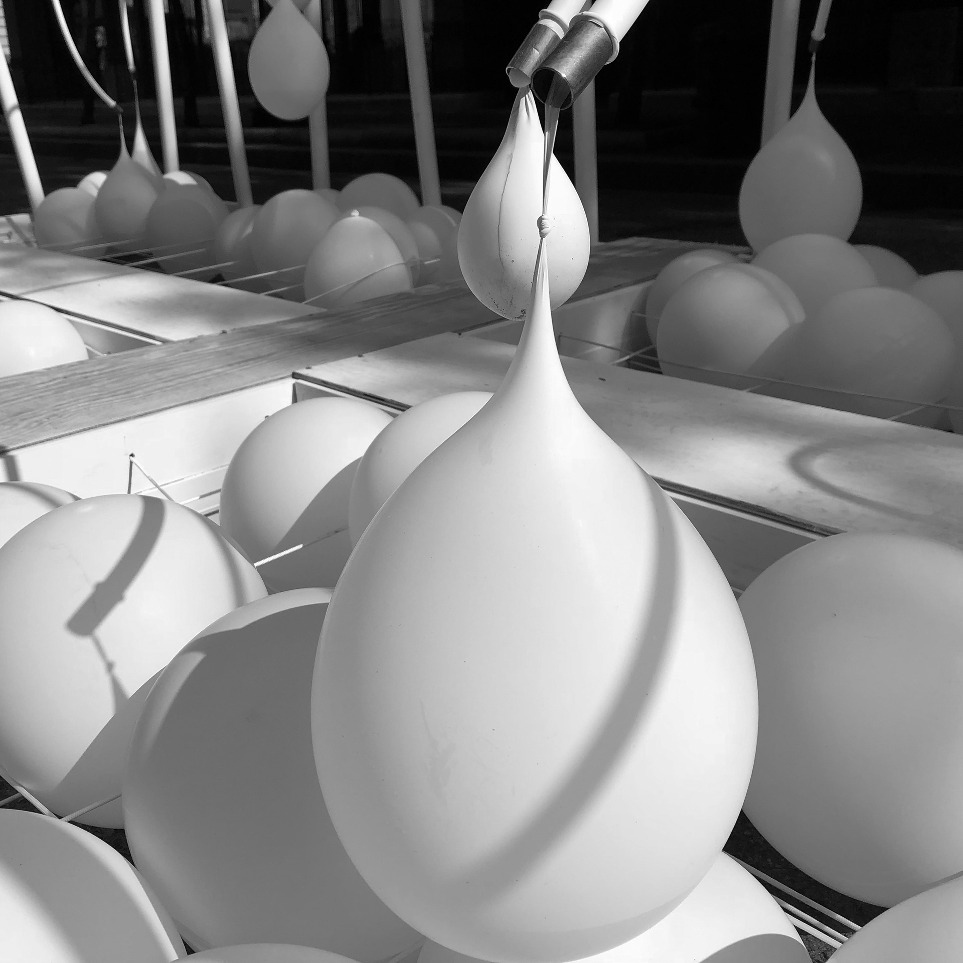 The use of lightweight materials such as balloons, PVC piping, softwood, and parachute cord serves as a transparent and playful opportunity for the space which serves as a starch contrast to the otherwise densely constructed vehicle that would be present in the space on any typical day.