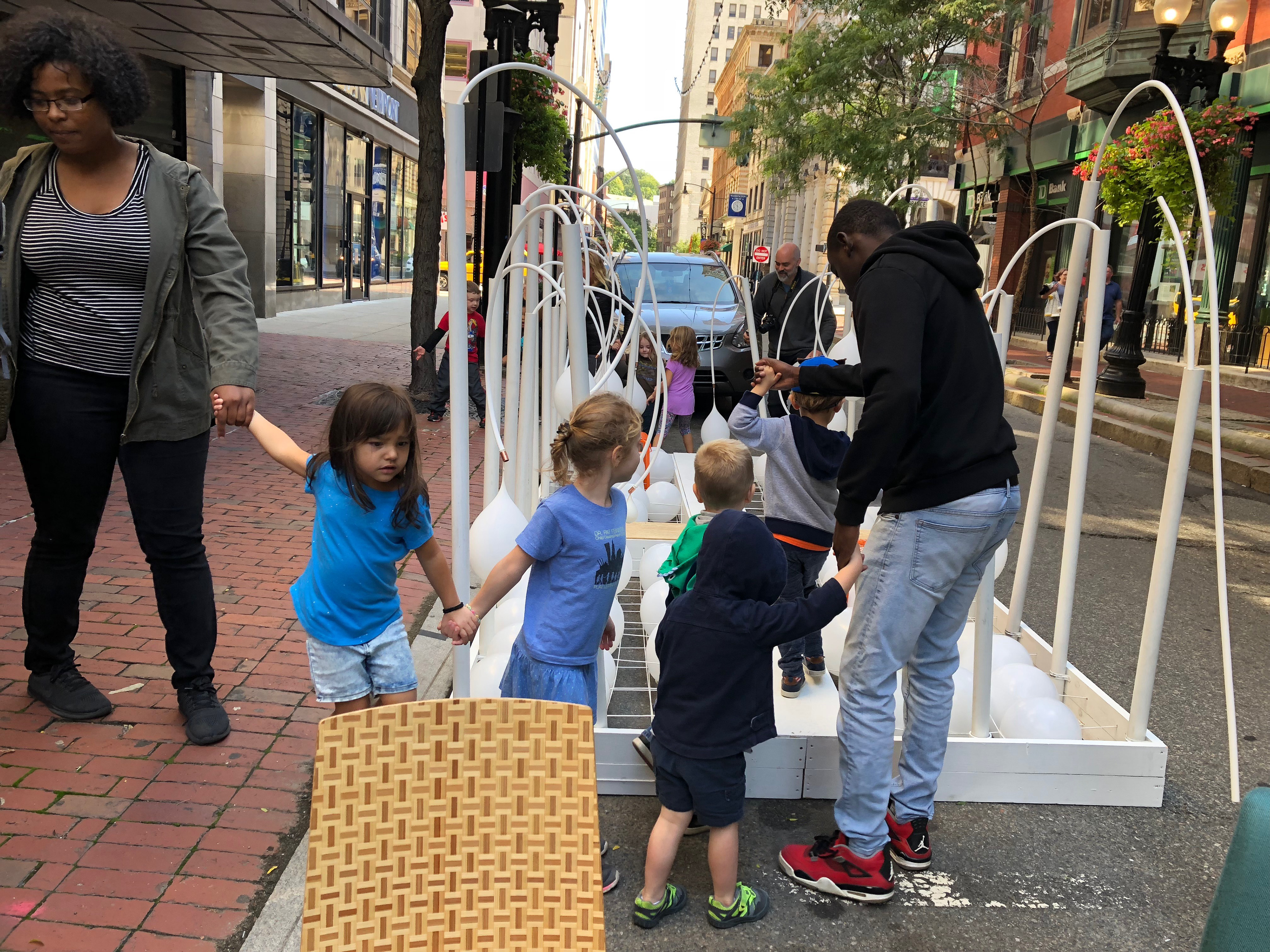 “Parking Day” is a yearly celebration that encourages designers and artists to create an installation that fits within an urban parking space. The ideology of creating an intervention within a parking space is to aid in proving to the city that the space allocated for parking a vehicle can, in turn, be re-purposed to create a node that promotes pedestrian interaction. While interning for DUAL in Providence, Rhode Island, we designed a parking day installation to be displayed along a main roadway in downtown Providence. The design intention was to stay true to the essence of “parking day” by creating a unique experience that breaks up the monotony of the otherwise vehicular-dominated street through the heart of the city.
